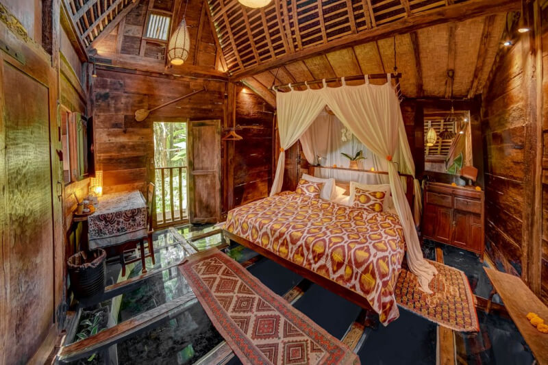 Khách sạn Udang cung cấp một trong những trải nghiệm khách sạn độc đáo nhất mà bạn có thể đi qua. Bước vào trong và lên sàn nhà ốp kính cường lực và ngắm nhìn đàn cá tôm đang bơi lội bên dưới. Để có những khoảnh khắc bạn không lơ lửng trên ao tôm, hãy bước ra ngoài sân hiên riêng để xem một dàn ếch và dế. Các vòi phun nước sủi bọt lấp đầy tai bạn với những cơn sưng tấy nhẹ nhàng. Phần này của Udang là nơi hoàn hảo để thư giãn vào buổi chiều ấm cúng và lười biếng. Mái của Udang phản chiếu sàn kính, cho phép bạn có thể nhìn thấy ánh trăng và mặt trời tinh khiết. Bạn đã thấy tò mò chưa nào?